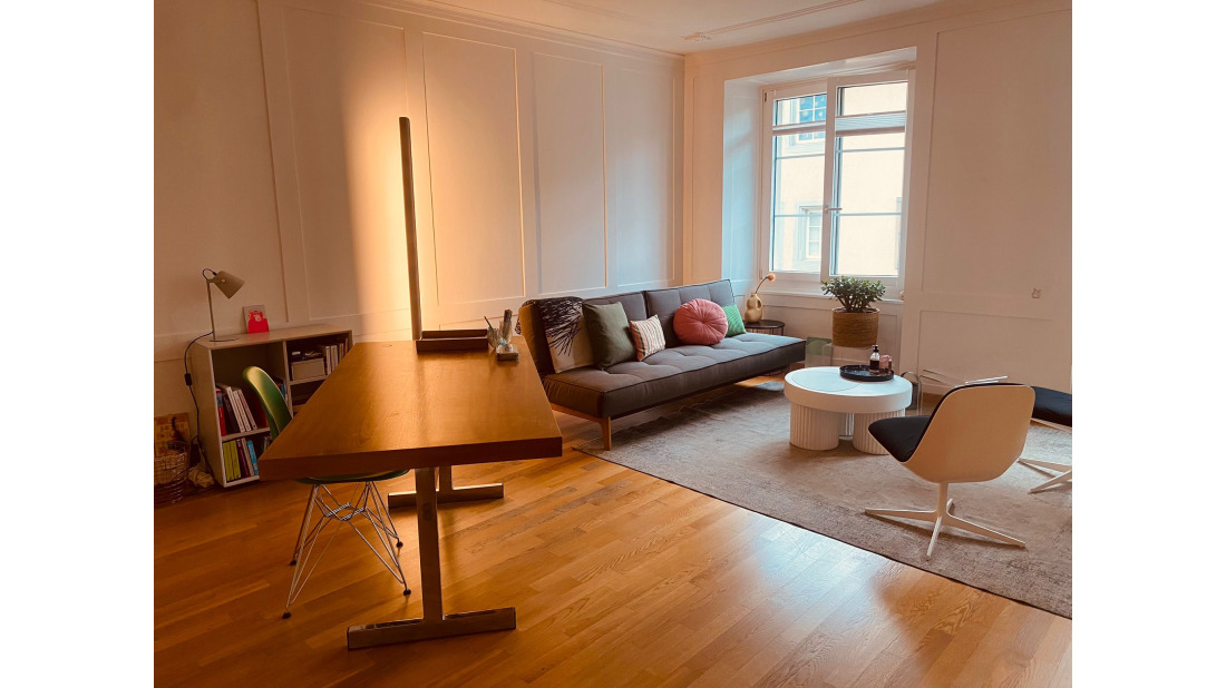Die Räume eignen sich für Psychotherapie/ Coaching/ Beratung oder ruhige Büroarbeit.