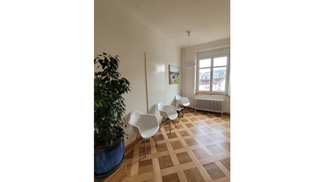Renovierter, heller Raum (ca. 32qm) in etablierter psychotherapeutischer Praxisgemeinschaft Nähe Stauffacher (Zürich) zu vermieten.