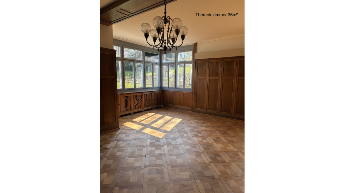 Ab März 2026 wird ein 36 m² grosser Therapieraum in einer Villa beim Sihlpark in Adliswil frei. Der Raum ist mit Holzwänden ausgekleidet, verfügt über Einbauschränke und bietet dank grosser Fenster viel Tageslicht sowie Blick ins Grüne.