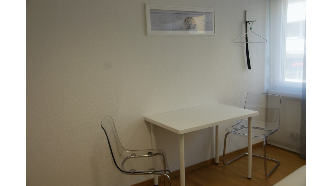 Der Raum bietet eine angenehme Atmosphäre und ist komplett möbliert.